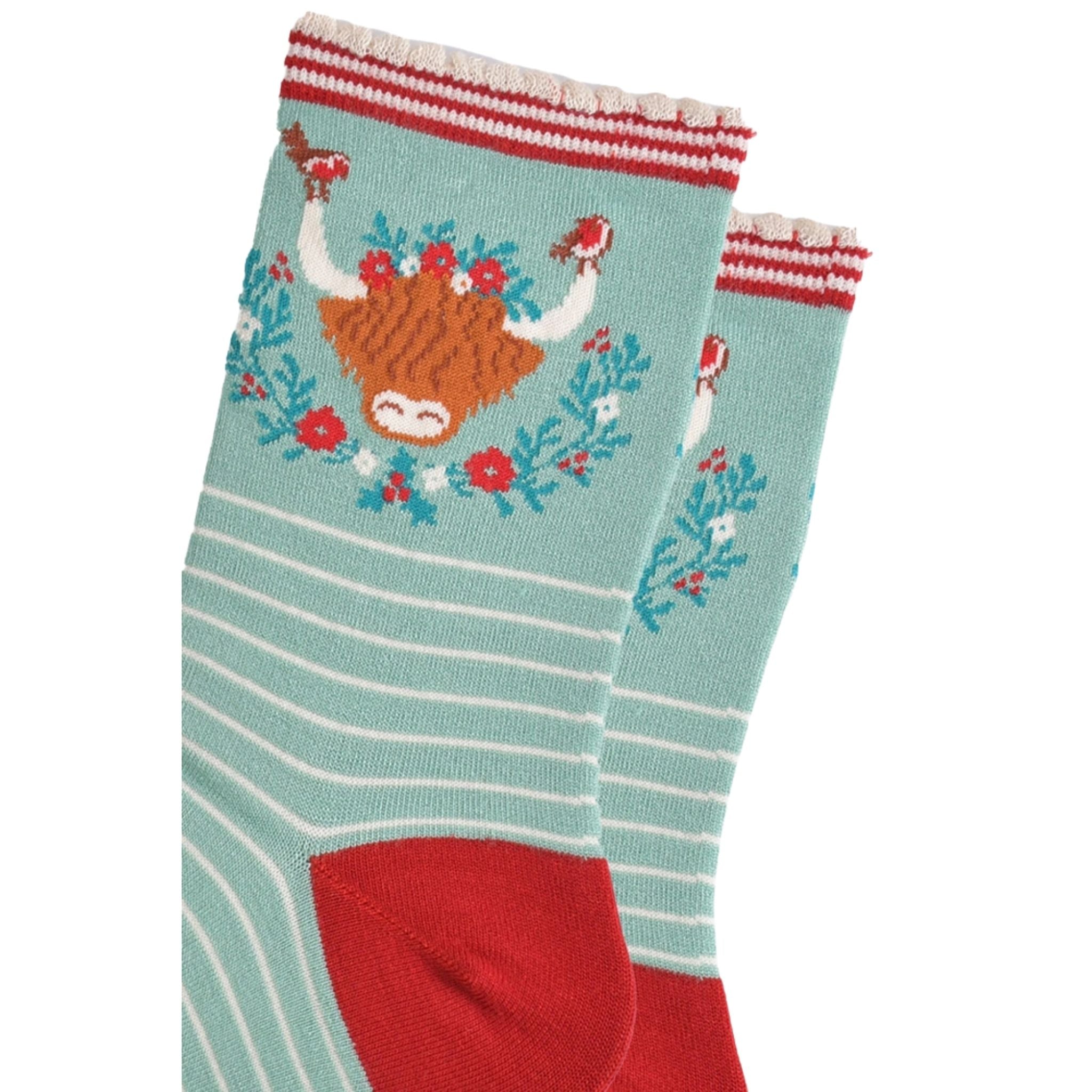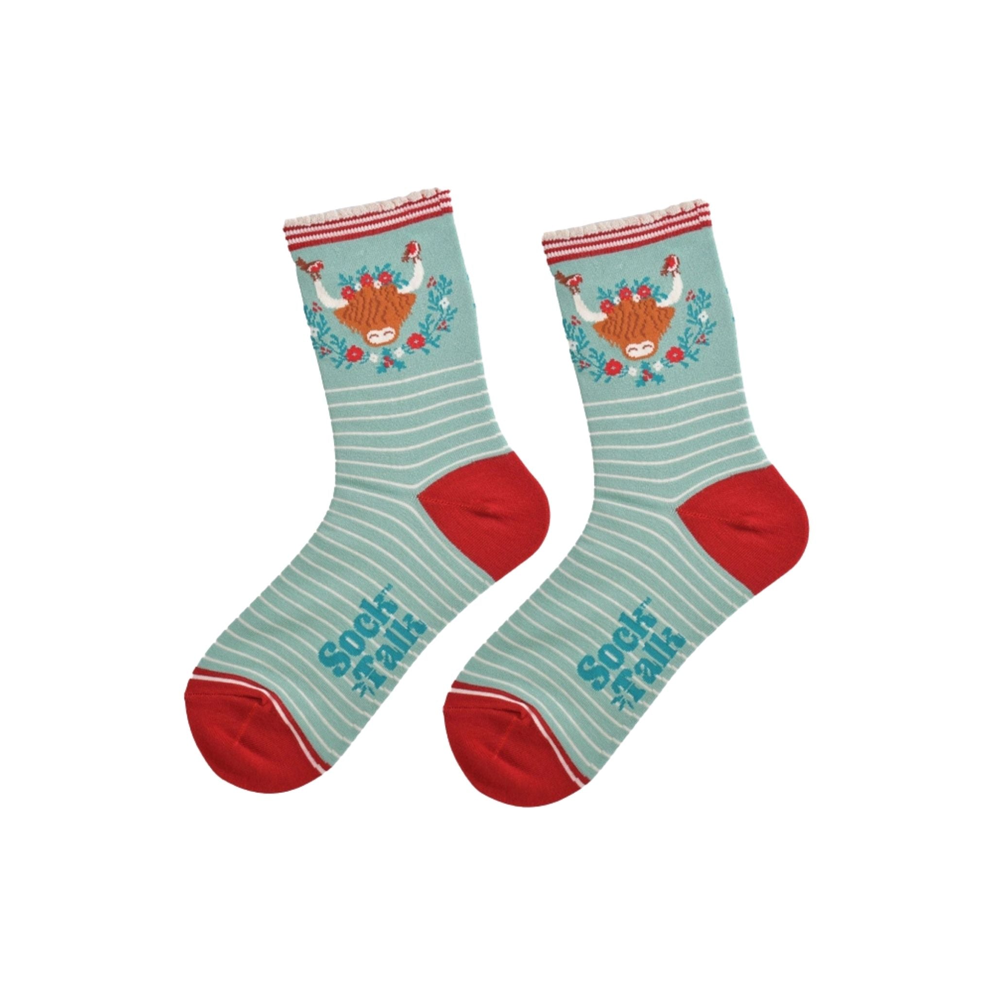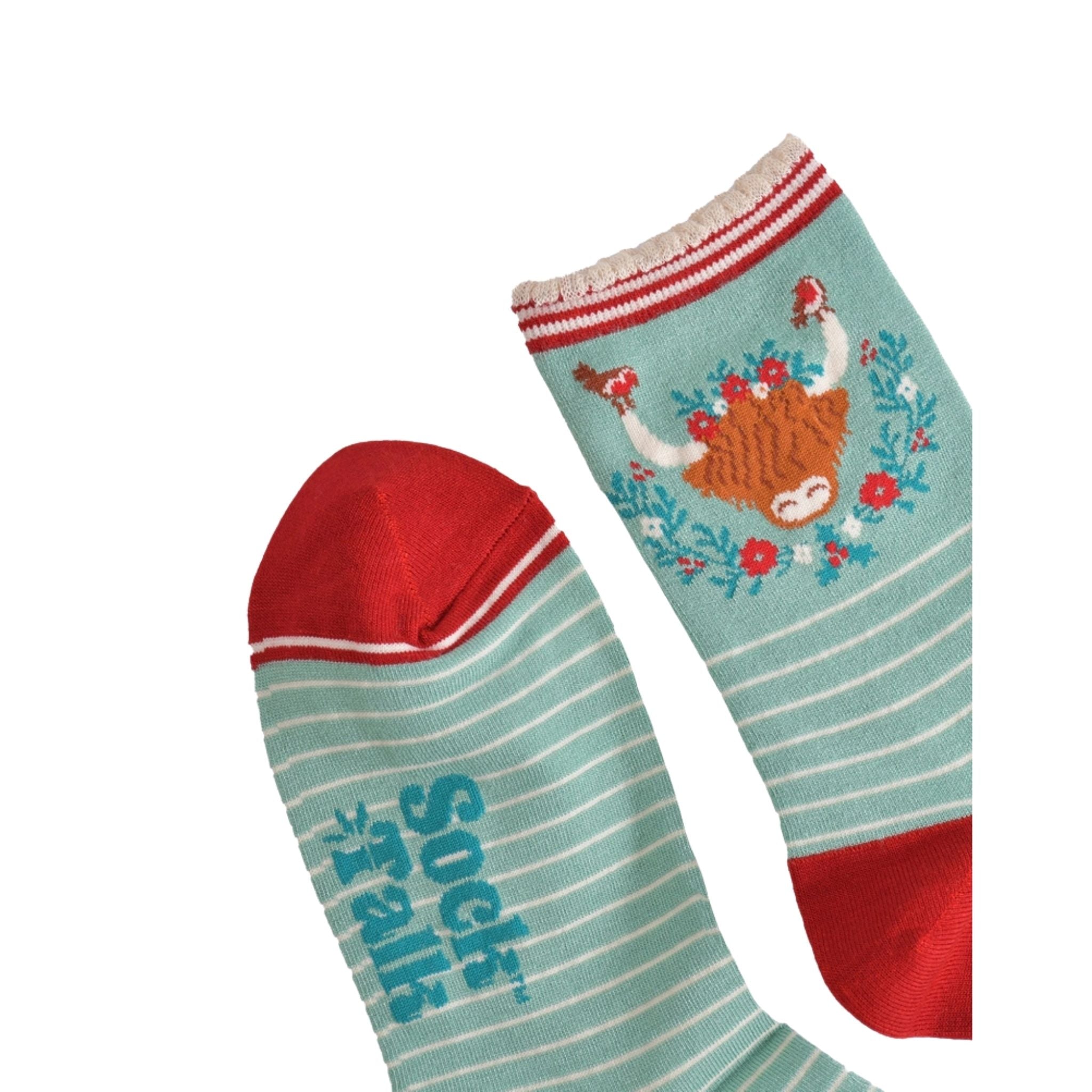 Diese Bambussocken mit süßem Highlandkuh-Motiv bringen Spaß und Gemütlichkeit in deinen Alltag. Hergestellt aus weichem, atmungsaktivem Bambusgewebe, halten sie deine Füße angenehm temperiert und frisch. Das grün-rote Design mit Rotkehlchen und Blumenkranz passt perfekt als geheimes Geschenk oder kleine Freude für sie. Nachhaltig, hautfreundlich und einfach zu pflegen – diese Socken sorgen für stilvollen Komfort von Größe 36 bis 40.